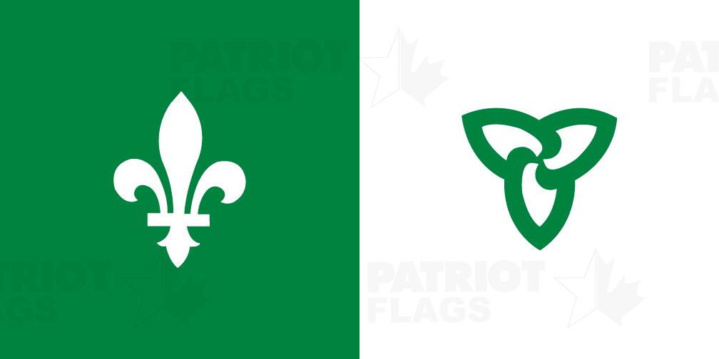 The Franco Ontario Flag is a symbol created to represent Frano-Ontarians which reflects the diverse languages, seasons and people of Ontario. The design is half green half white with a white Fleur-de-lys in the middle of the green and a green trillium in the middle of the white. The green is for summer and the white is for winter.